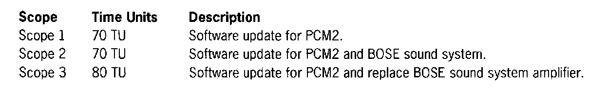 The software version of the BOSE amplifier can be read out by simultaneously pressing the FM-AM, AUDIO, and set button (Fig. 1, Item 1, Item 10, and Item 19) under software versions. The software version displaying on the PCM2 display for the BOSE amplifier must be "must be "00011927' (or higher).