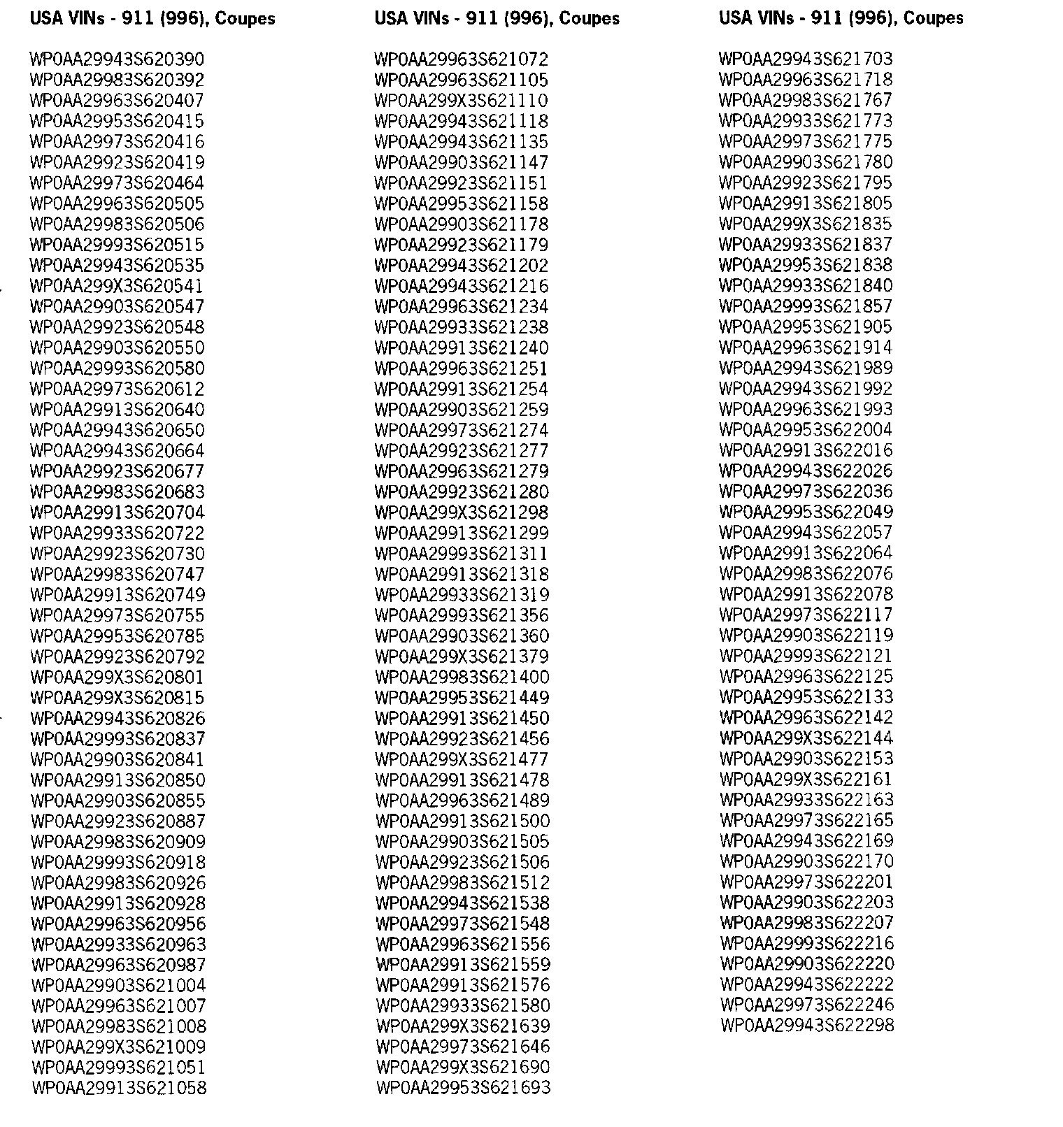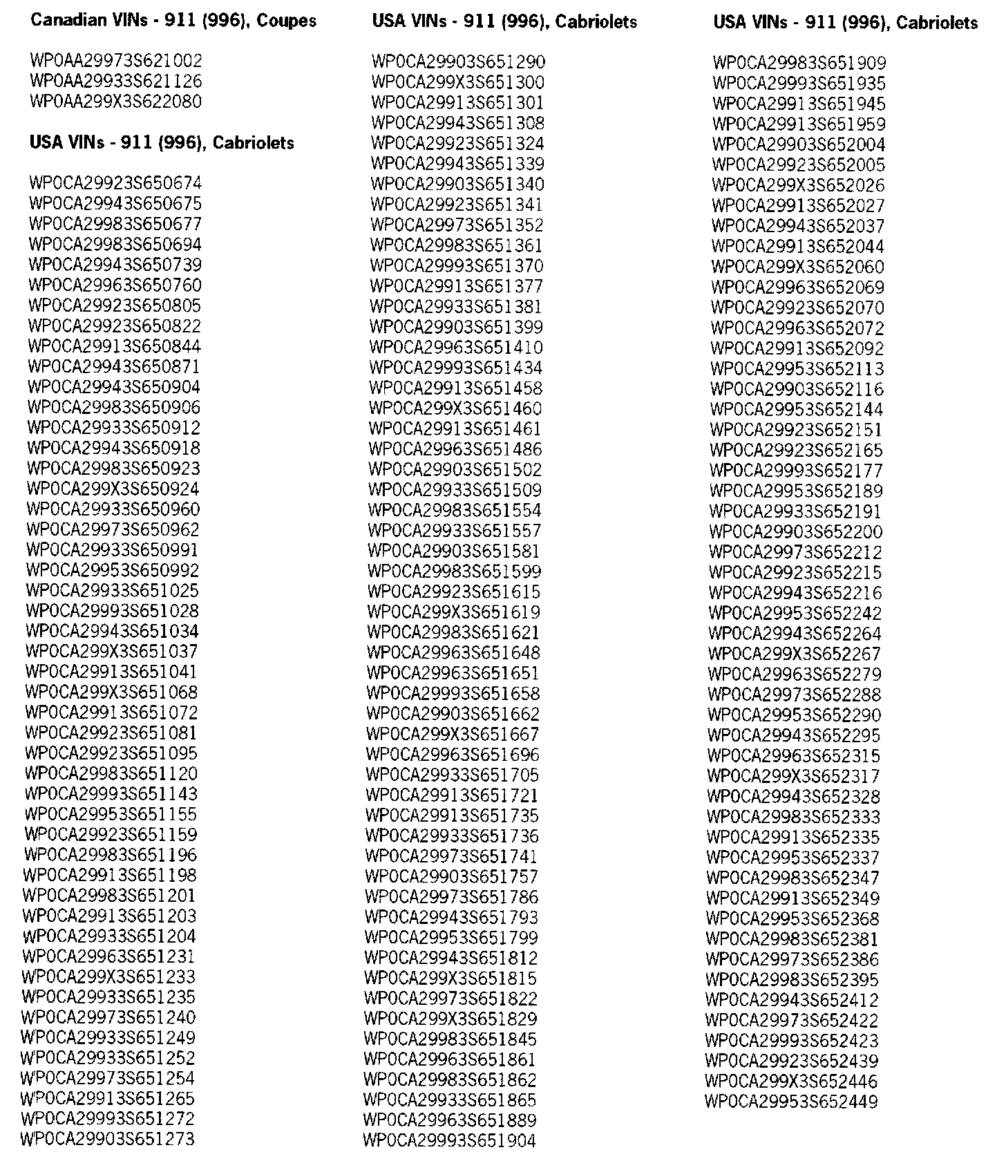 Not every vehicle in the below listed range may be affected. Use the ranges below as a general guideline. Refer to Attachment "A" to determine if a particular vehicle is eligible for this service action. Alternatively, the VIN can be checked in the Porsche e-DCS/WWS for confirmation of an open service action.