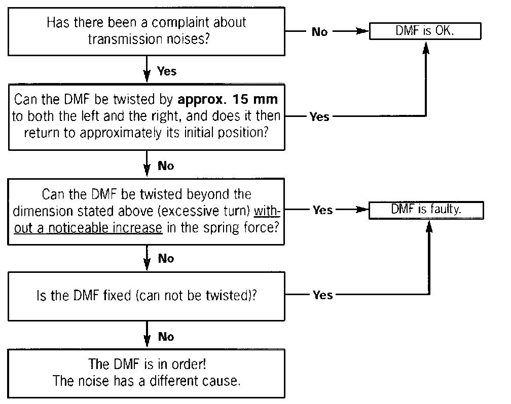 A test of a DMF must only take place if a complaint has been received concerning transmission noises (rattling, knocking) in the operational or driving conditions stated above.