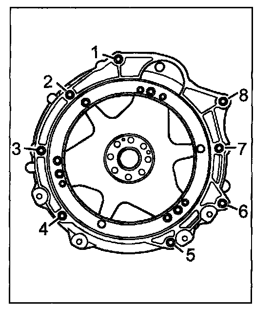 2. Detach converter housing. To do this, unscrew 8 connecting screws between the engine and the converter housing and remove the converter housing.