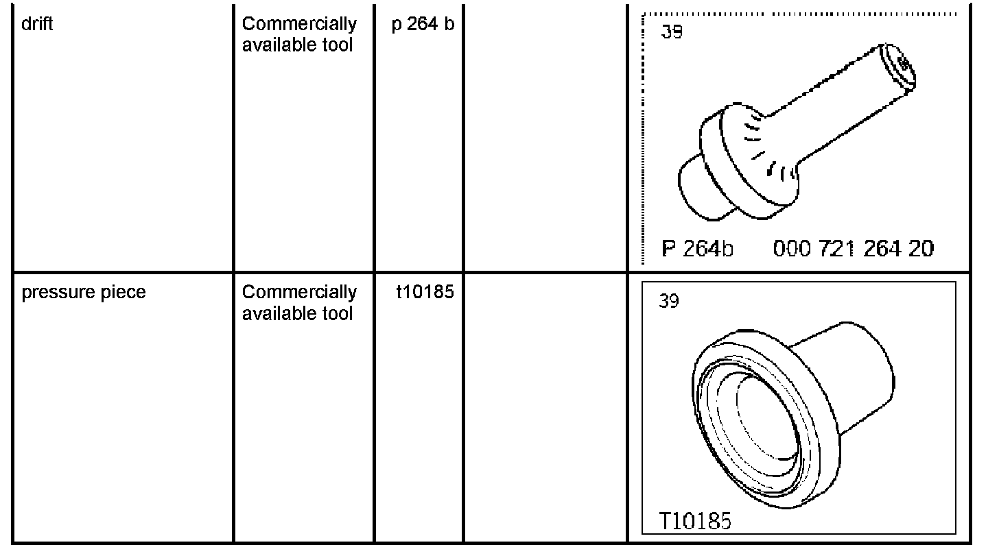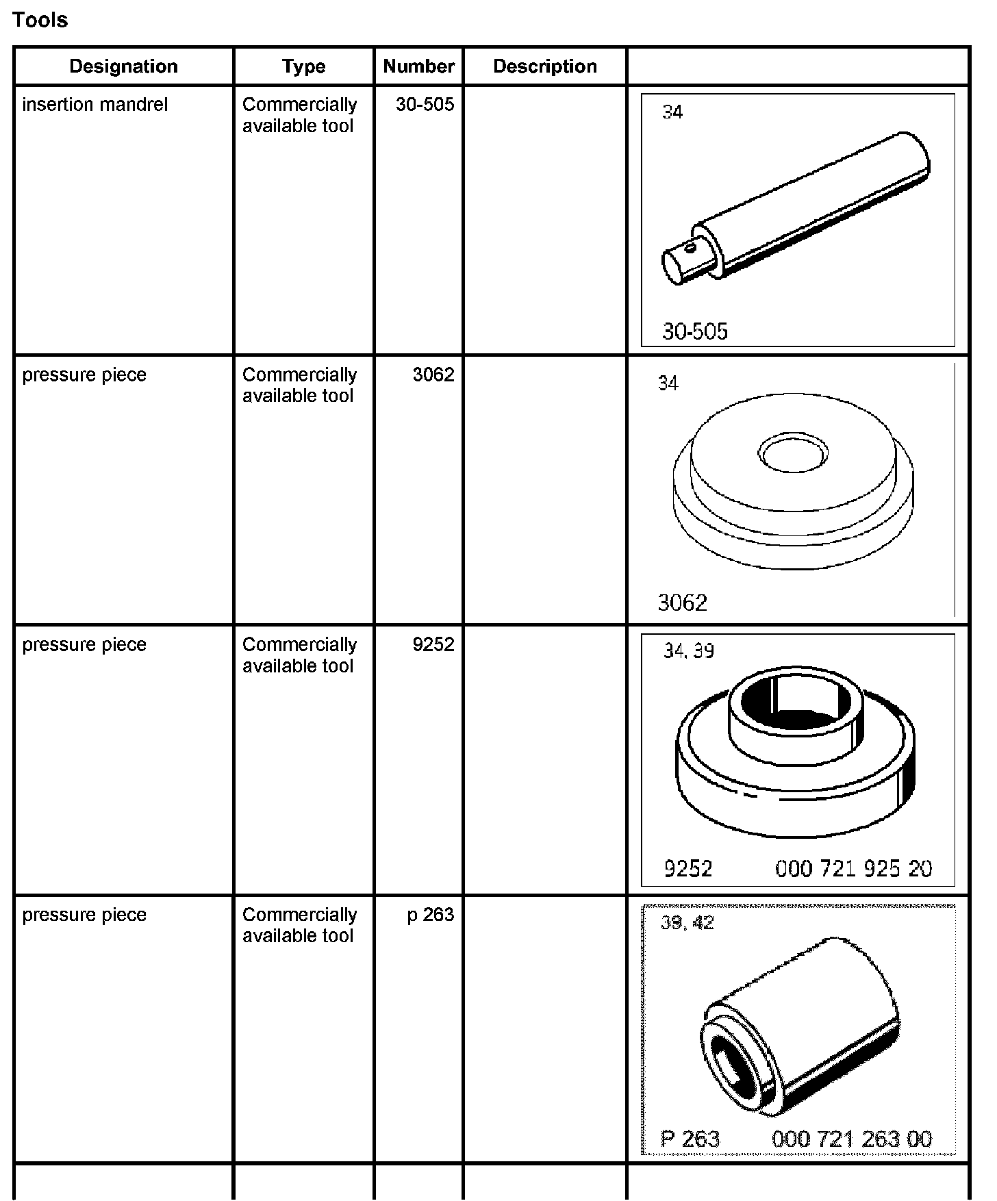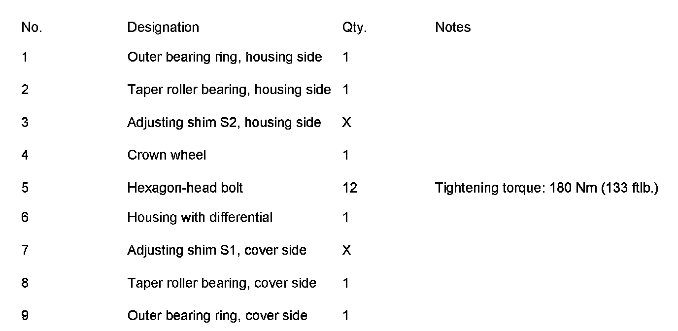 - The thickness of the adjusting shims must be determined again depending on the replaced parts. 390815 Adjusting drive set