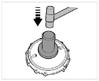 8. Prise shaft sealing ring out of transmission cover using a suitable