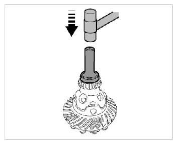 12. Fit taper roller bearing on the housing side on the differential using special tool drift.