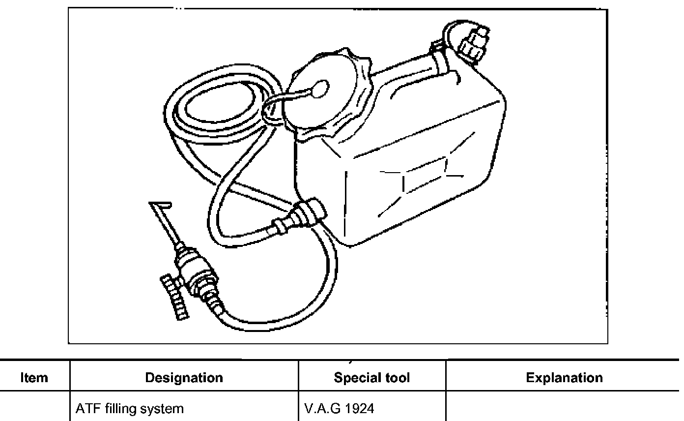 1. Attach the filled ATF container (special tool V.A.G 1924) as high up on the vehicle as possible.