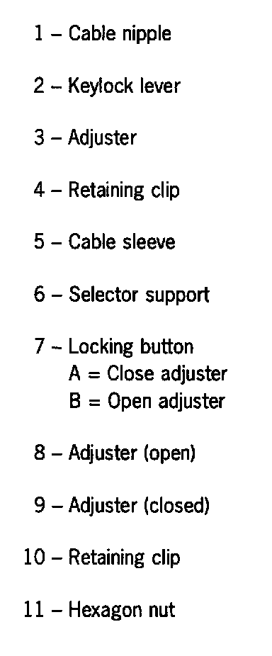 Note: Adjust the keylock cable only with the selector knob fitted.