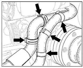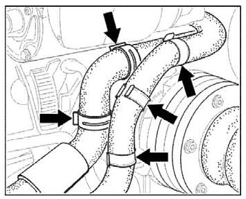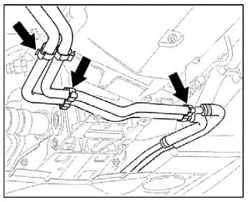 5. Disengage the coolant hoses in the area of the flanged shaft.