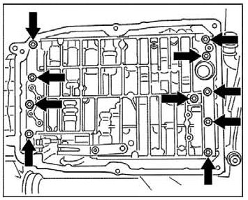 - Do not let engine run with the ATF pan removed or without ATF filling.