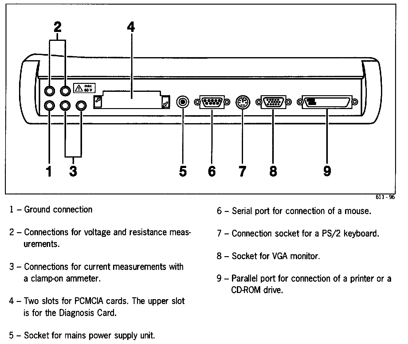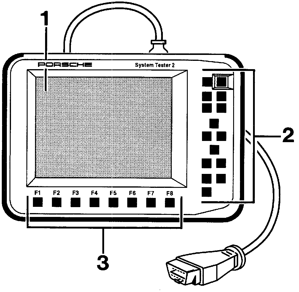 The Porsche System Tester 2 is a modular, portable diagnostic and measuring system. It can be used in any location to perform diagnostic tests on electronic control modules. It consists of a computer unit, a main memory, a hard disk, a VGA display panel, a rechargeable nickel metal hydride battery and a measuring unit for measurement of current, voltage and resistance values.