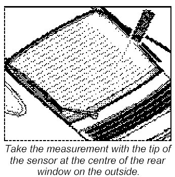 - The heating wire on the rear window must run exactly under the tip of the sensor for this measurement procedure.