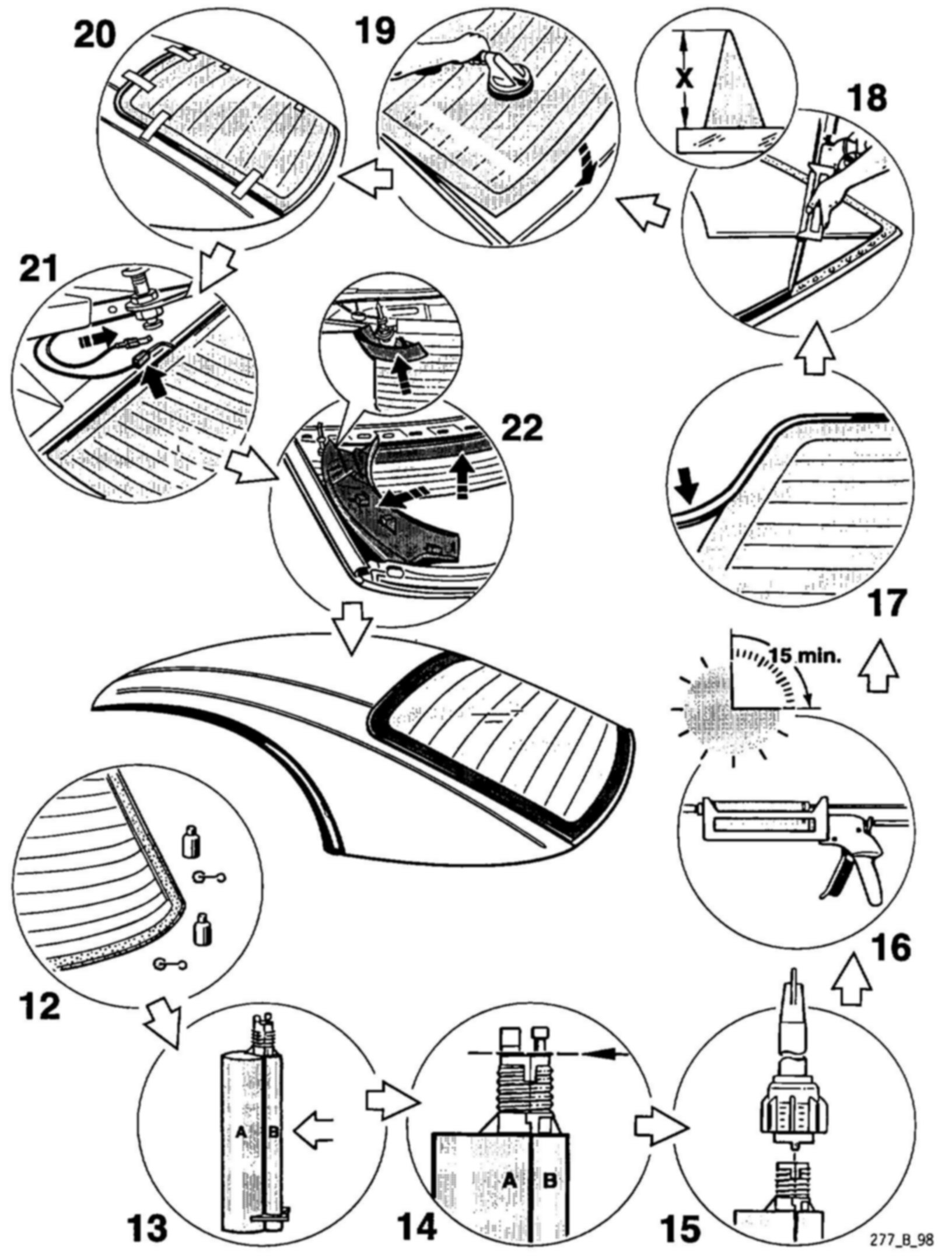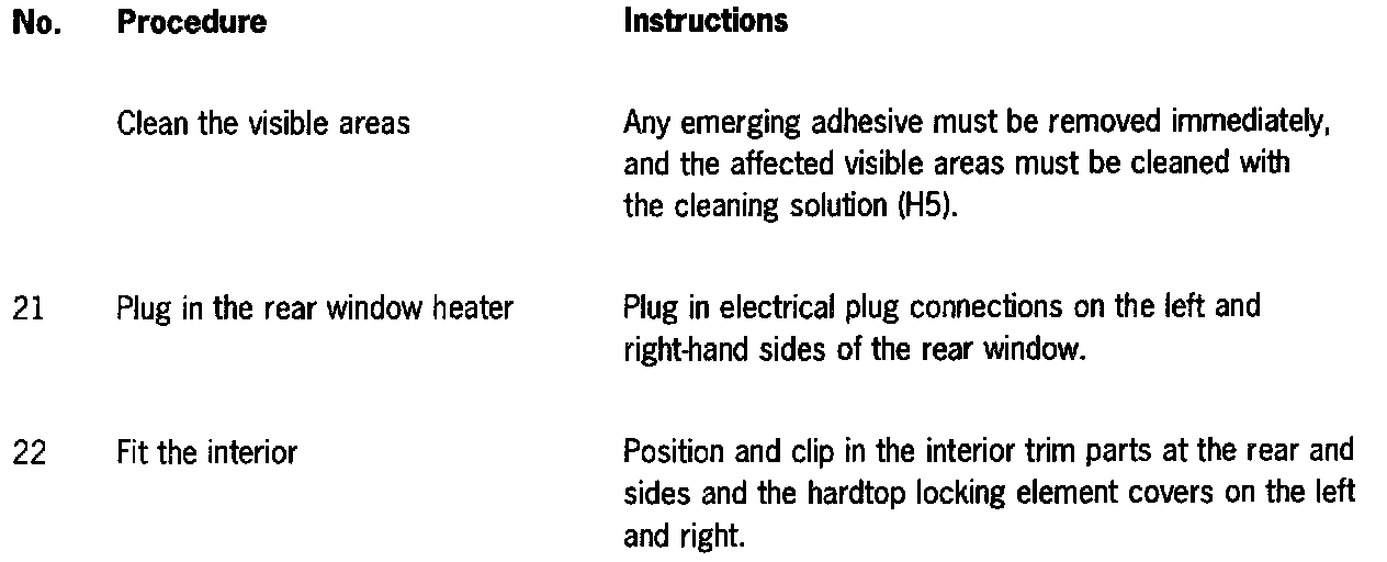 The hardtop must not be used on the vehicle before the curing time has elapsed!