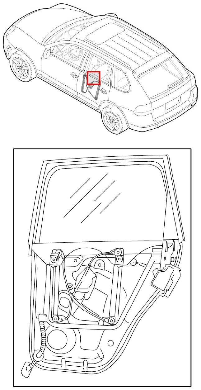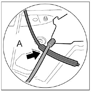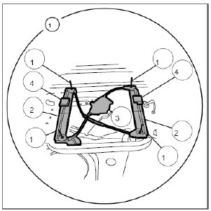 1.1. Place the power window on the door unit carrier as shown. Make sure the cable is in the correct position ( -arrow A- ).