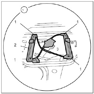 1.2. Unclip power window gear -3- from the door unit carrier and remove the power window.