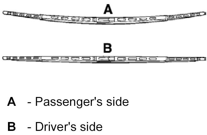 - The wiper blades for the driver's and passenger's side are different. The wiper blade on the driver's side is straight. On the passenger's side it is curved. This arrangement applies to left-hand drive and right-hand drive vehicles.