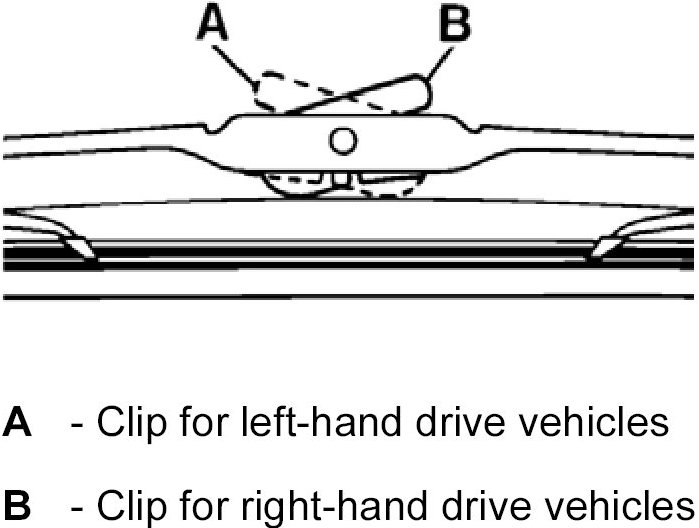 The clip installation position must be observed when installing the wiper blades for left-hand drive and right-hand drive vehicles.
