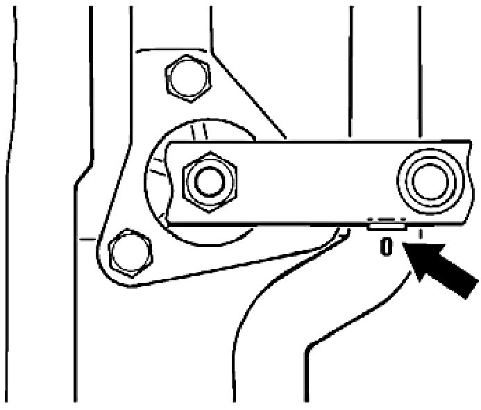 1. Wiper motor in parking position. Fit the link. The installation position is identified by a 0 marking (parking position) on the console.