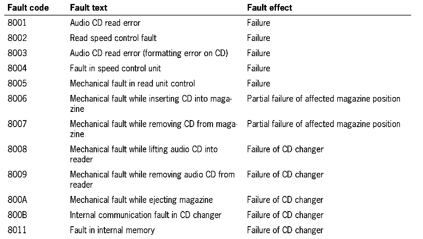 CD Changer Fault Overview: