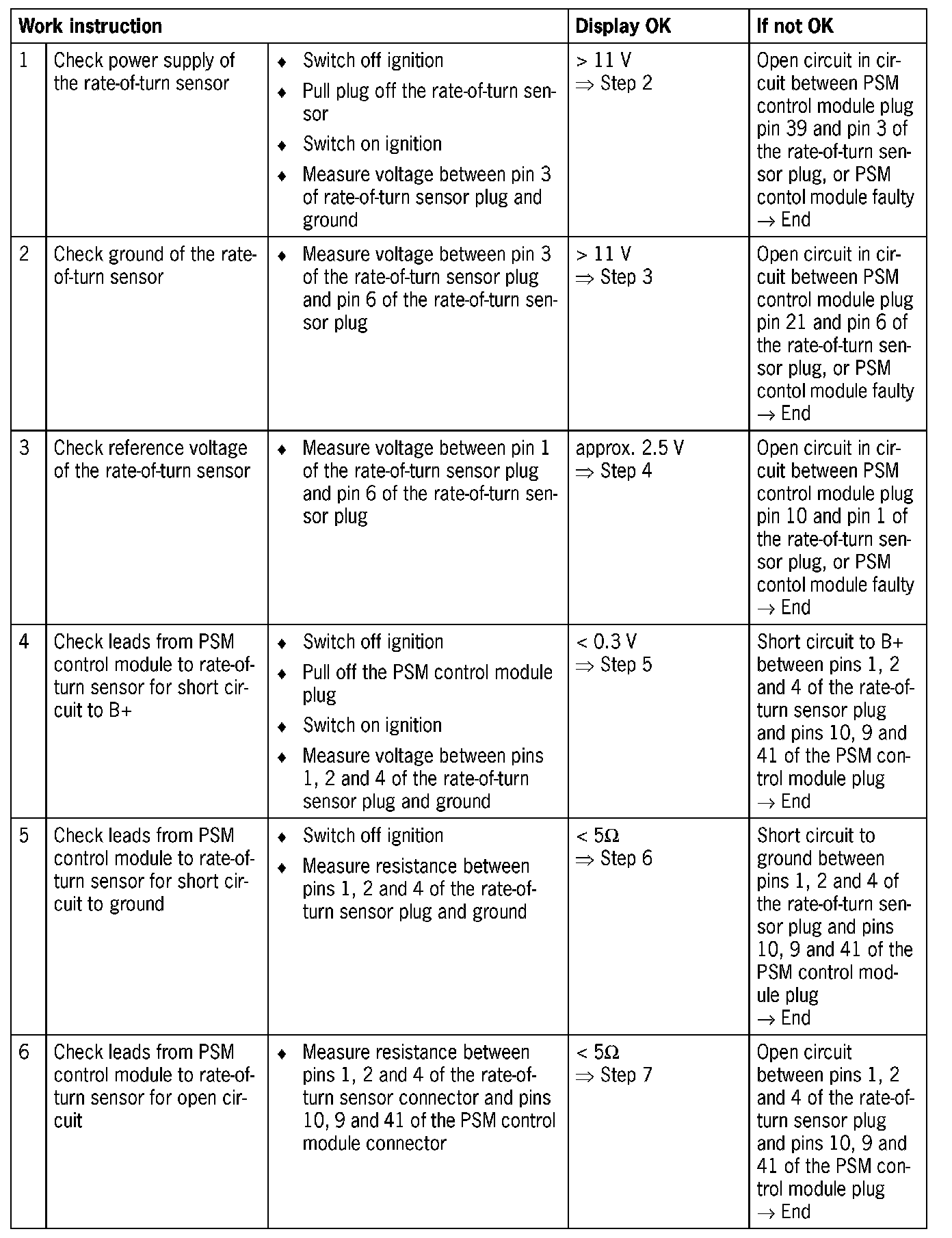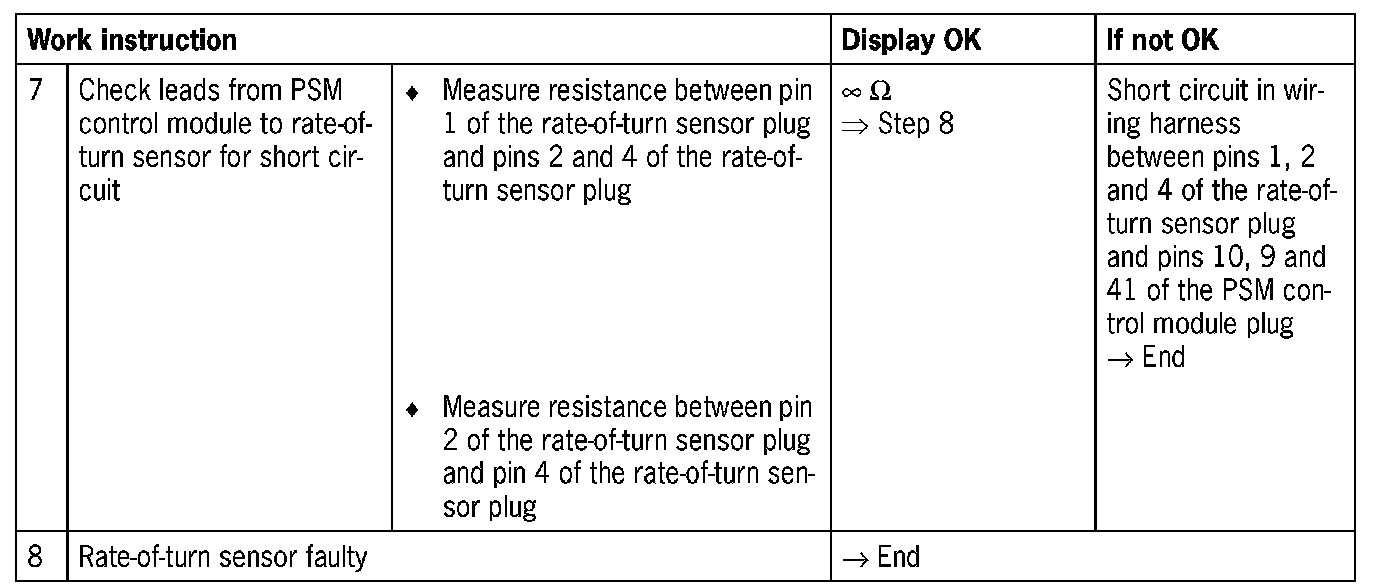 - The fault is stored in the event of a fault in the electrical system of the rate-of-turn sensor or in case of a voltage drop.