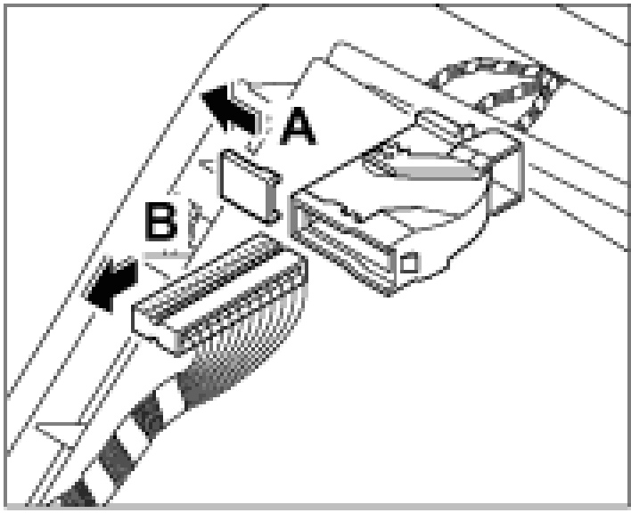 9. Disconnect the plug of the alarm control module, open the plug -A- and pull out the pin strip -B-.
