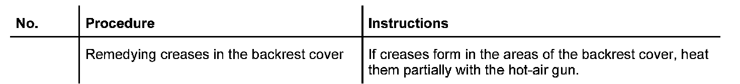 - If creases form, only short partial warming with the hot-air gun is permissible. Always observe the hot-air temperature of approx. 50 degrees Celsius (122 Fahrenheit).