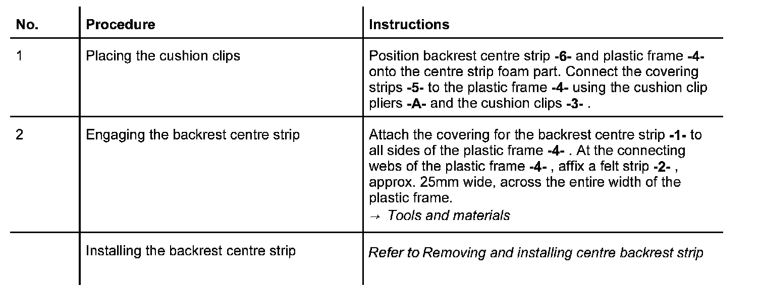 Replacing Covering For Backrest Centre Strip