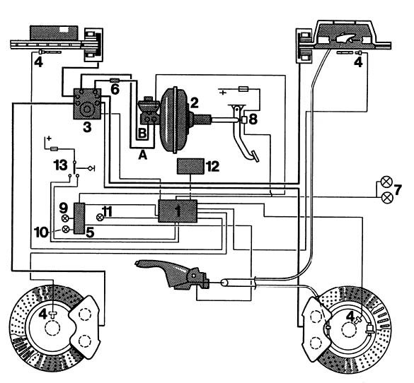 1. Brake control: In addition to reducing the engine power (driving-stability control), the TC (via the ABD) brakes the drive wheel that is spinning. Since this control requires the drive wheels to be individually controlled, the ABS/TC system is a 4-channel system.