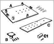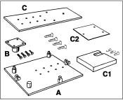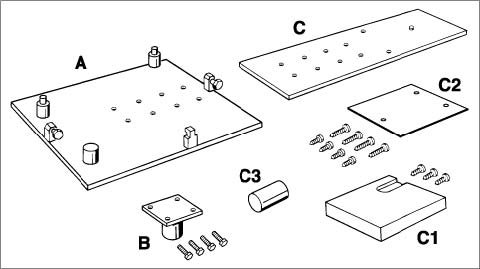4. Fit the support for the Tiptronic transmission -C1- (and if necessary the spacer plate for the tolerance compensation -C2- ) with 3 wooden screws (2 screws 6x20 and 1 screw 8x25) to the support plate 9592/1.
