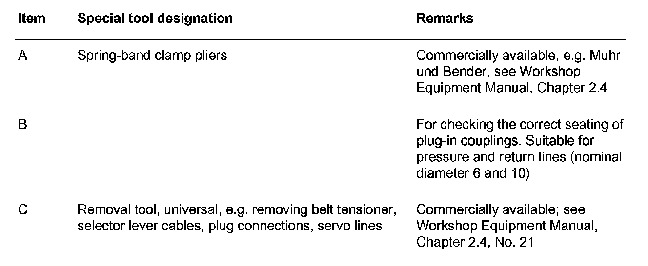 Adjusting tools, Tiptronic transmission