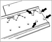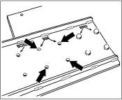 3. Drill through the countersunk points on the retainer plate -arrows- with a steel drill bit sized 6.8 mm and then cut an M8 thread. During removal of the engine, fit the retainer plate 9592 on the take-up points on the underside of the engine.