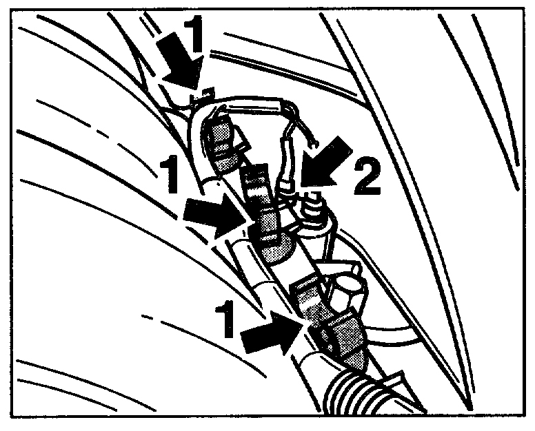 10. Remove cable plugs of the injection valves by pressing in the wire clips and pulling off the cable plugs.