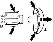 - Unclip collar on the hazard warning light switch. The hazard warning light switch (B) is held in the instrument bridge by two locking hooks. Press the right locking hook toward the switch, grip the button holder with a pair of pliers and pull out the switch toward the front. Pull off plug on the left side and undo the 5.0 x 22 Torx screws. Lift the instrument cluster at the left and right and unclip; disconnect electrical plug connections. If the vehicle is equipped with a "handsfree telephone", disconnect the microphone plug connection instead of the dummy plug.