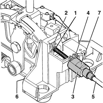 - Press cable sleeve (5) toward the selector console (6).