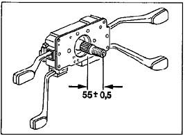 7. Install steering column switch and airbag contact unit with the associated covers. Position the steering column switch before tightening the fastening screw. To do this, measure with a depth gauge between the end of the steering shaft and the sheetmetal cover of the steering column switch (refer to Figure 115-96). Adjusting distance 55 ± 0.5 mm The adjusting dimension 55 ± 0.5 mm can also be adjusted or measured with the airbag contact unit fitted.