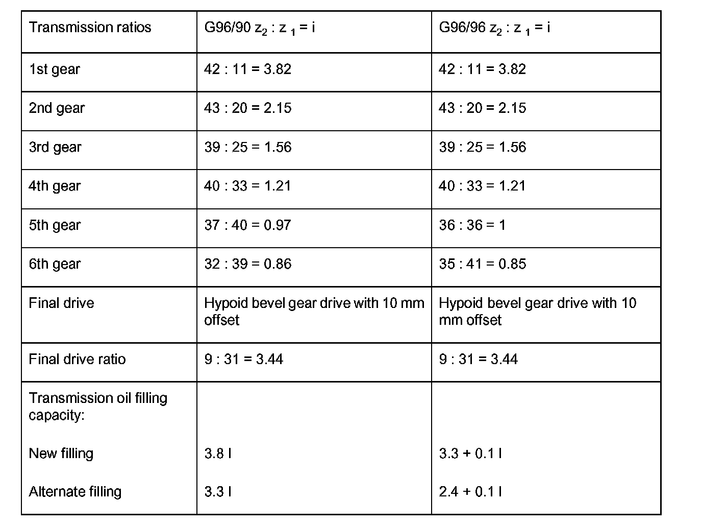 Technical data - GT3Six-speed manual transmission G96/90 and G96/96