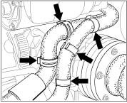 7. Install the coolant hoses with hose holders in the correct position.