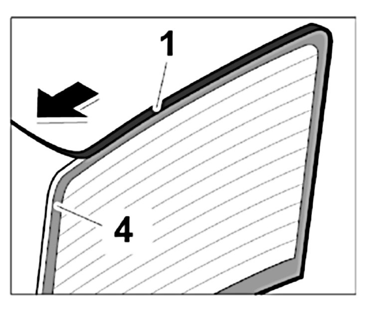1.1. Place surrounding section -4- on the rear window and press cover section -1- into the groove of the surrounding section -4-.