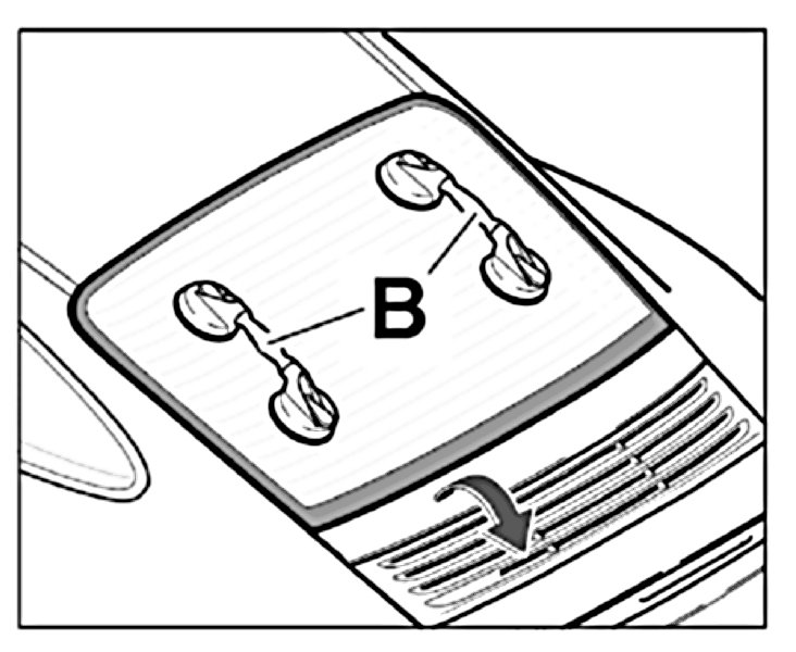 4.1. Apply suction cups -B- to the rear window and insert the rear window into the window aperture.