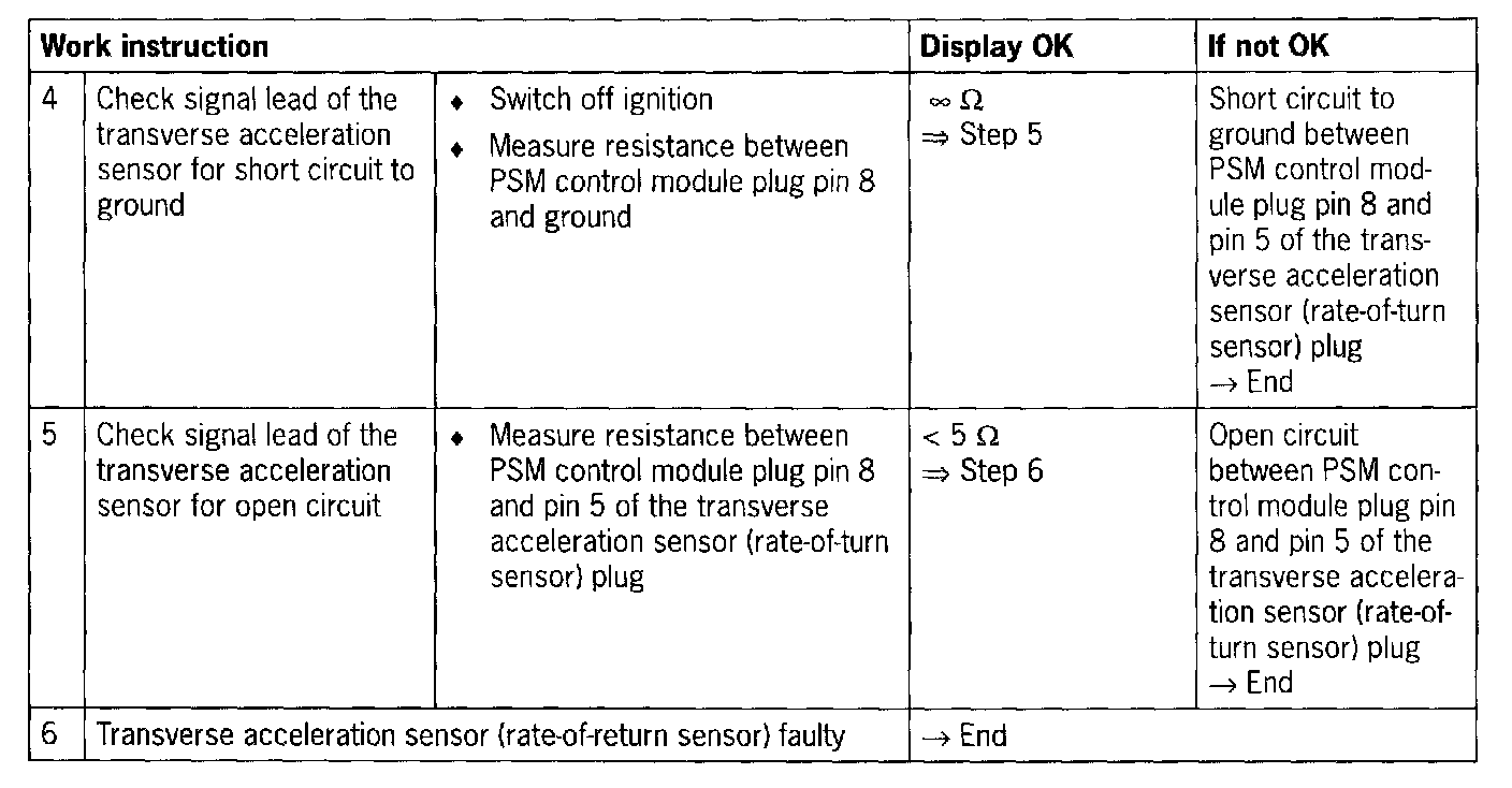 The following troubleshooting procedure applies to the transverse acceleration sensor (rate-of-turn sensor) 996.606.145.00 as of 08/00