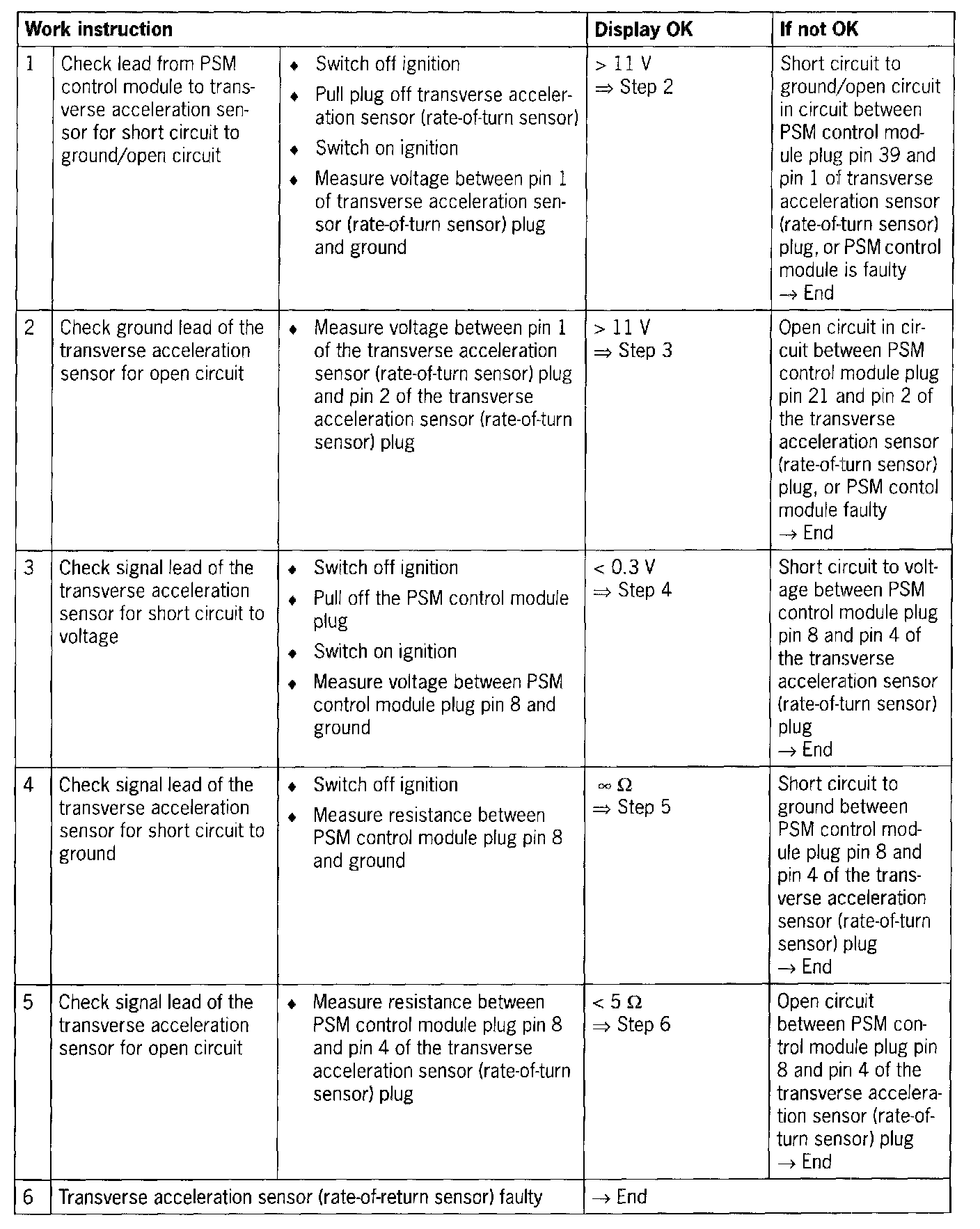 The following troubleshooting procedure applies to the transverse acceleration sensor (rate-of-turn sensor) 996.606.147.00 up to 07/00.