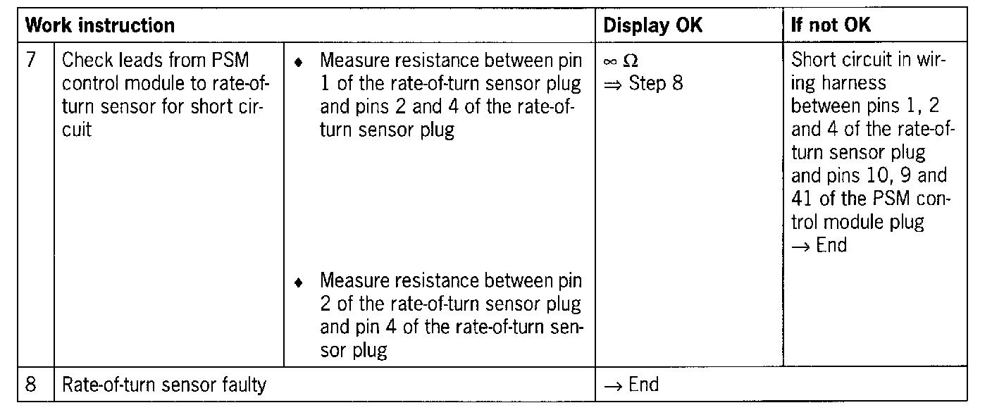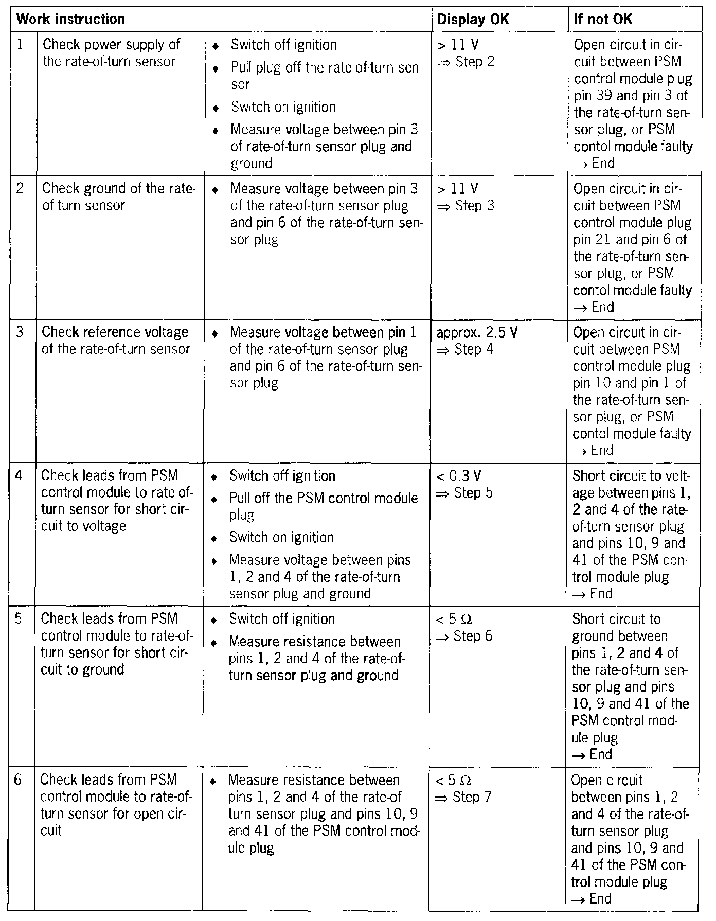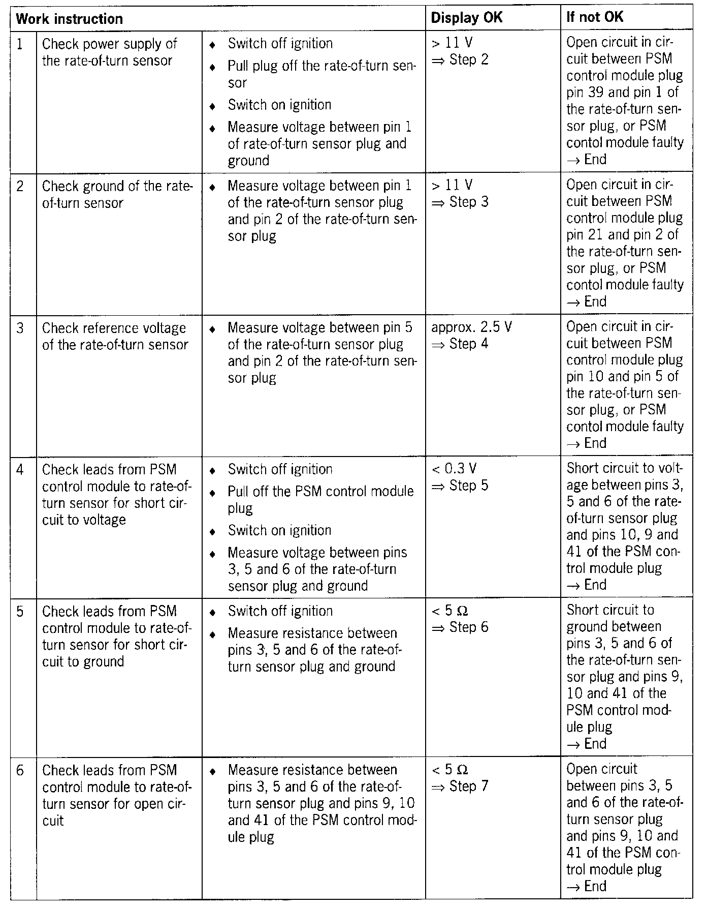 The following troubleshooting procedure applies to the rate-of-turn sensor 996.606.145.00 as of 08/00.