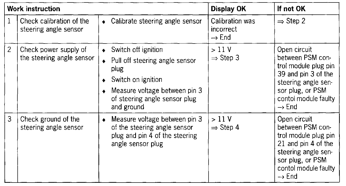 - The fault is stored in the event at a fault in the electrical system of the steering angle sensor or in case of a voltage drop.