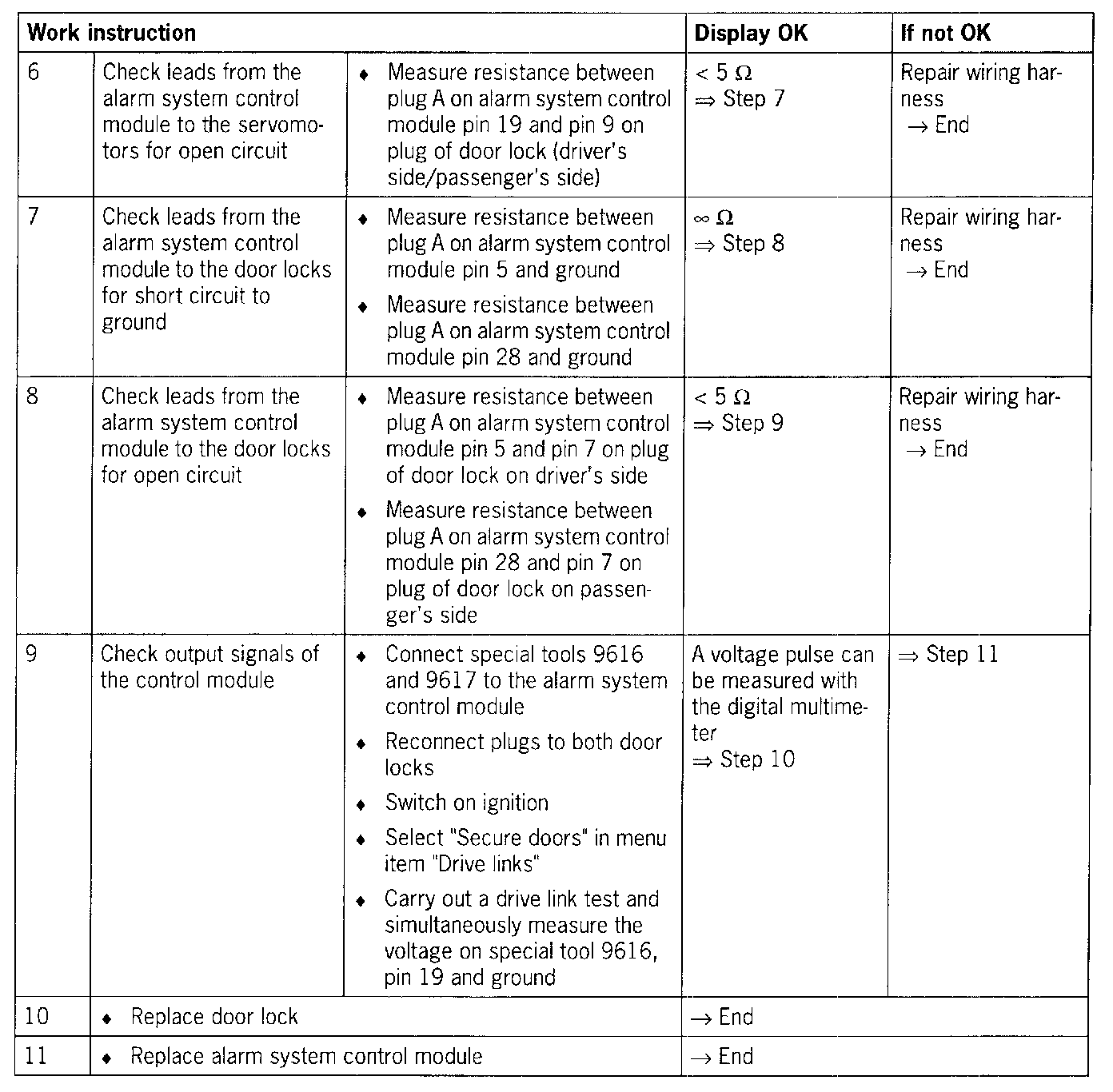 - Short circuit to ground/open circuit in the wiring between the alarm system control module and both door locks
