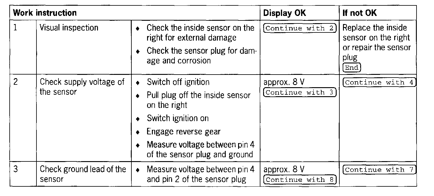 - Continuous fault tone emitted after engaging reverse gear