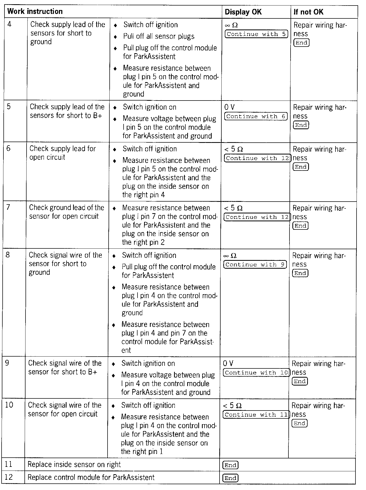 - Short circuit to voltage/ground or open circuit in the supply leads between the control module and the inside sensor on the right