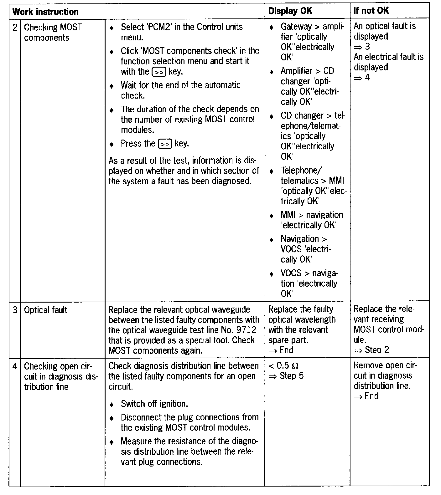 - The receiving MOST control module is faulty