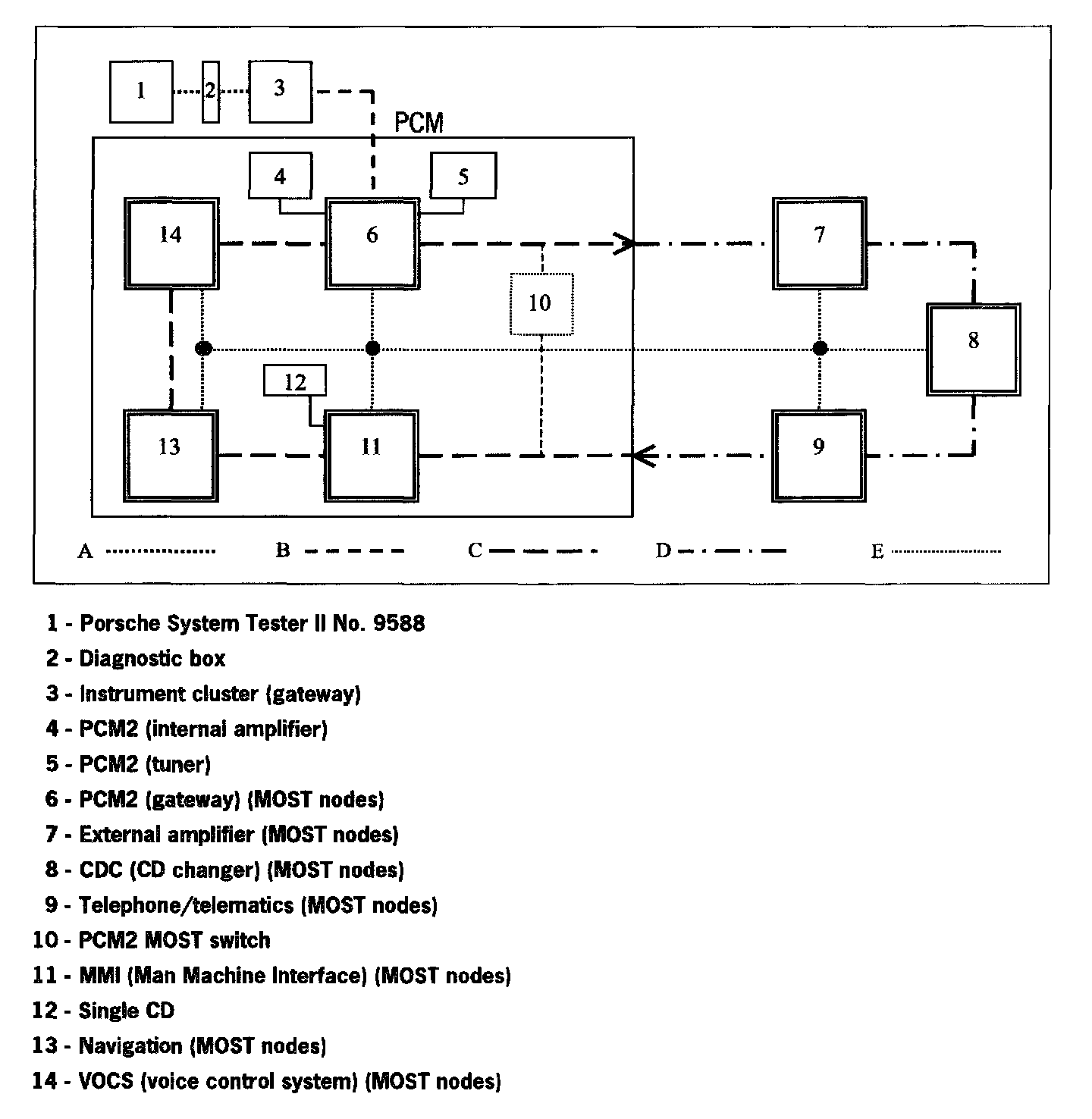- An optically/electrically faulty MOST control module is connected to the MOST