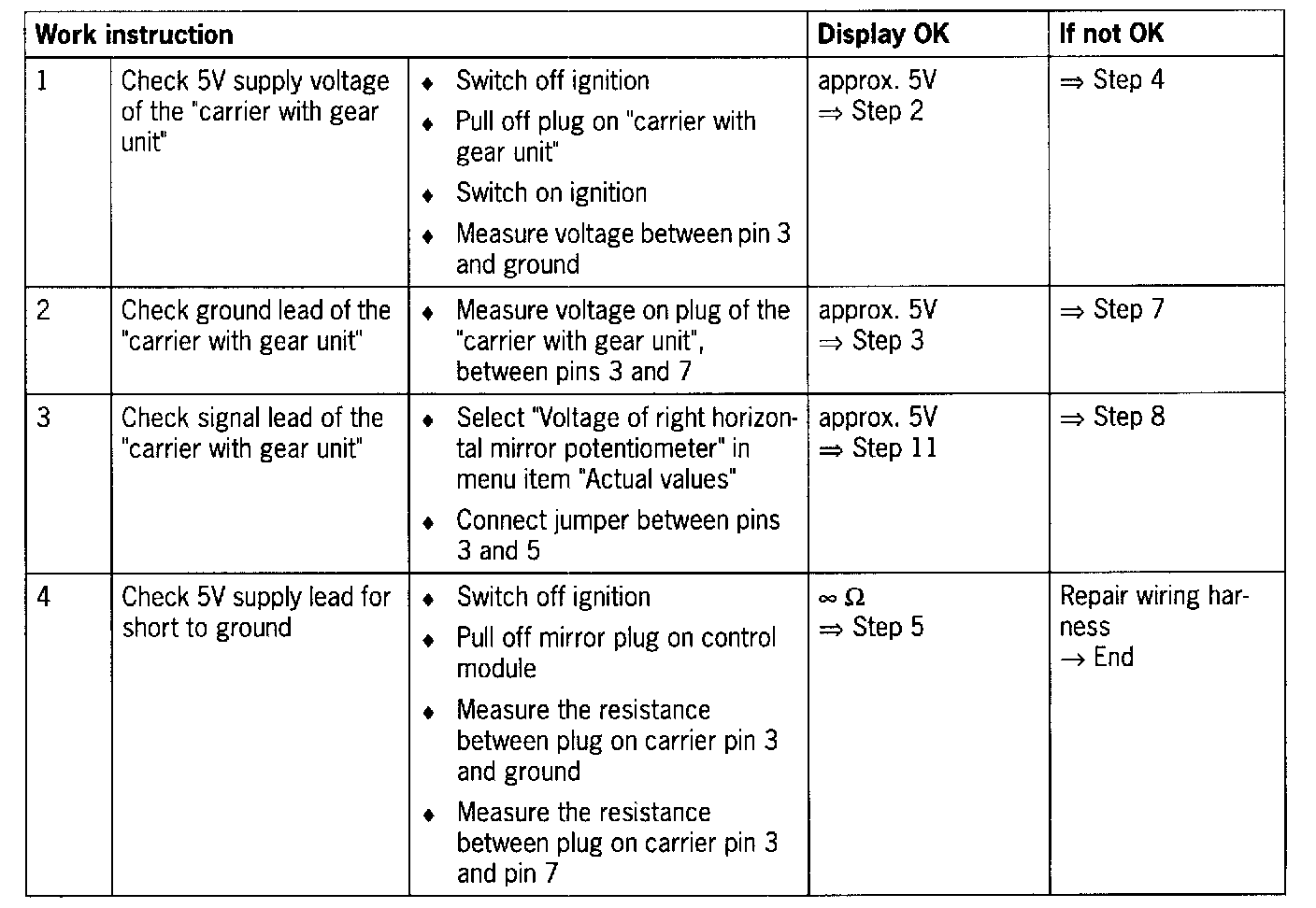 - Short circuit in supply lead to pot. for right rearview mirror