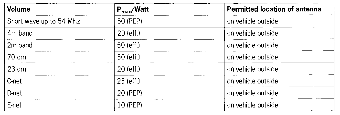 In general, it is necessary to get approval for the installation of mobile communication Systems (car telephone, mobile phone, two- way radios, etc.) in a vehicle that received its type approval after 1st January, 1996. Mobile two-way radios (telephones) that are retrofitted must have a type approval for this vehicle and be identified with an 'e'. In the Drivers Manual of its vehicles, Porsche has approved mobile telephones and two-way radios with a maximum transmission power of 10 W. Porsche permits the installation and operation of two-way radios over 10 W for the radio services listed below under the following preconditions: