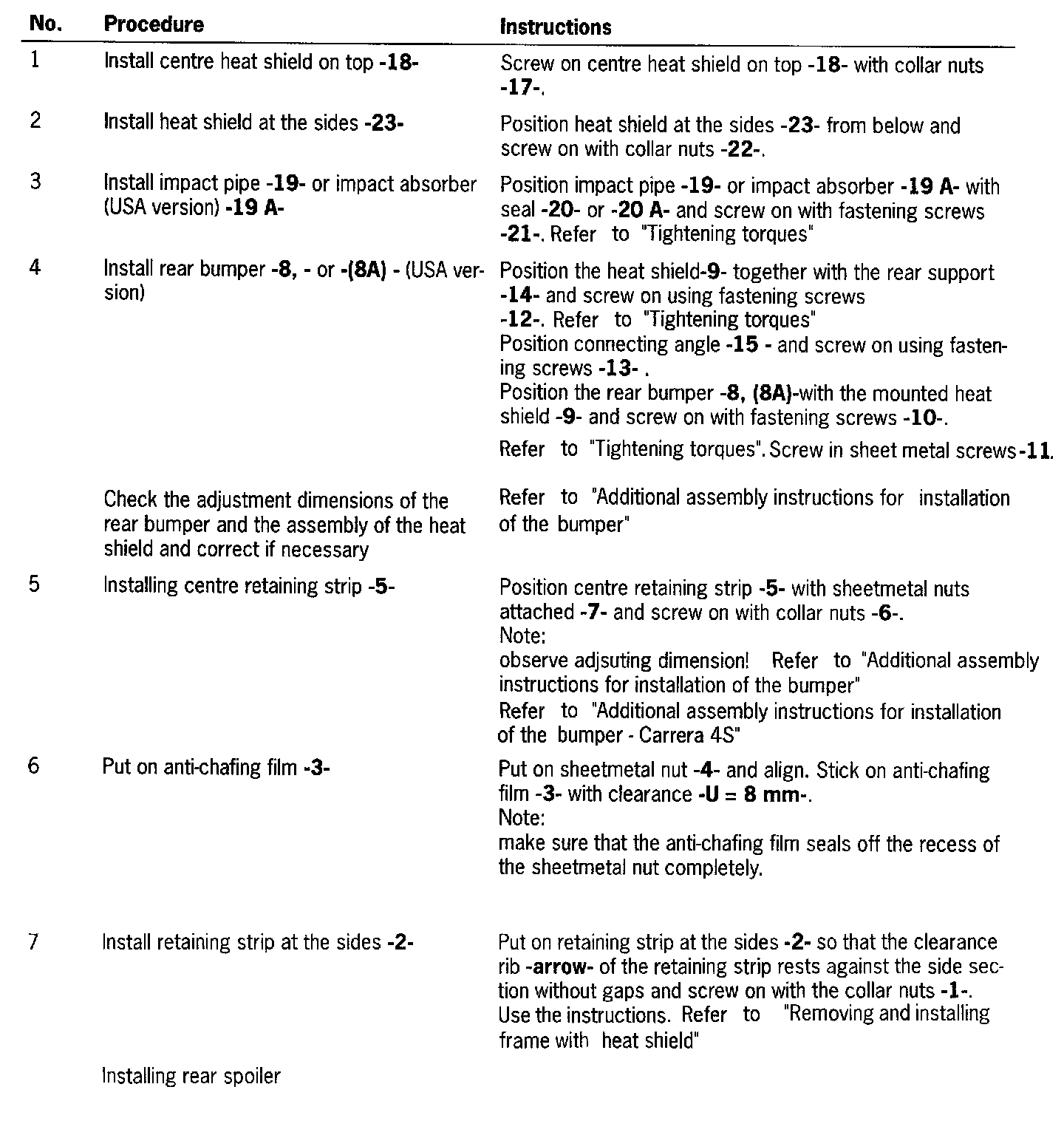 1. After assembly of the rear spoiler, check that there is a gap dimension -W > 50 mm- between the shield of the exhaust system -24- and the lower retaining strip -25-. Check heat shield projection -Z = 0 - 4 mm-.