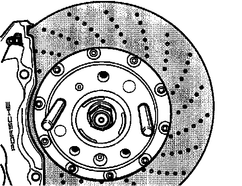 Caution. PCCB (Porsche Ceramic Composite Brake): Danger of material damage during wheel removal-installation (danger of damage to brake discs).