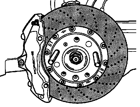 ^ The front PCCB brake discs of the Turbo and GT2 are different. Use the correct brake disc when replacing.